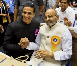 नई दिल्ली: राष्ट्रपति भवन में 64वें राष्ट्रीय फिल्म पुरस्कार वितरित किए गए। जिसमें अक्षय कुमार फिल्म रुस्तम के लिए बेस्ट ऐक्टर के अवॉर्ड से सम्मानित किया गया। मशहूर निर्देशक के. विश्वनाथ को दादा साहेब फाल्के पुरस्कार दिया गया।राष्ट्रपति प्रणव मुख्रजी ने डायरेक्टर श्री के. विश्वनाथ को दादा साहब फाल्के अवॉर्ड से नवाज़ा, पुरस्कार समारोह में अभिनेत्री सोनम कपूर अपने बॉयफ्रेंड आनंद आहूजा के साथ पहुंची थीं, अभिनेत्री सोनम कपूर की फिल्म ‘नीरजा’ को बेस्ट फिल्म के नैशनल अवॉर्ड का सम्मान मिला, अभिनेत्री सोनम कपूर ने फिल्म नीरजा में अपने रोल के लिए स्पेशल मेंशन अवॉर्ड प्राप्त किया !
