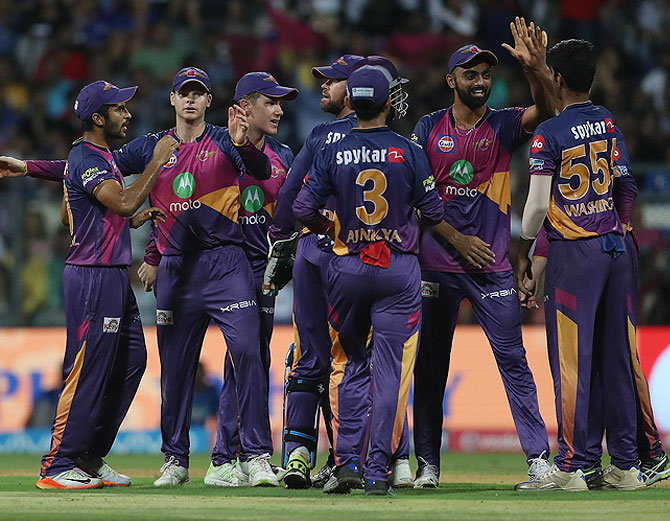 राइजिंग पुणे सुपरजायंट : अजिंक्य रहाणे, राहुल त्रिपाठी, स्टीव स्मिथ (कप्तान), मनोज तिवारी, महेंद्र सिंह धोनी, डेनियल क्रिश्चियन, लॉकी फर्ग्यूसन, वाशिंगटन सुंदर, शार्दुल ठाकुर, जयदेव उनादकट और एडम जम्पा.