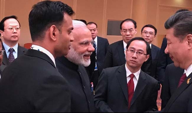 जर्मनी के हैम्बर्ग शहर में हो रहे दो-दिवसीय जी-20 सम्मेलन भारतीय प्रधानमंत्री नरेंद्र मोदी और चीन के राष्ट्रपति शी चिनफिंग ने ब्रिक्स देशों – ब्राज़ील, रूस, भारत, चीन और दक्षिण अफ्रीका – के प्रमुखों की अनौपचारिक बैठक के दौरान एक दूसरे की तारीफ की. बैठक के लिए कमरे में दाखिल होने पर भी दोनों नेताओं ने एक दूसरे से हाथ मिलाया और अभिवादन किया.