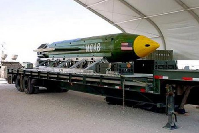 अमेरिका ने अफगानिस्तान में अब तक का सबसे बड़ा बम गिराया है. इस बम का बजन करीब 21600 पौंड है  इस बम का नाम GBU-43 है. इसे मदर ऑफ आल बम भी कहा जाता है.अमेरिका ने पहली बार इस बम का इस्तेमाल किया है. इस बम से कितना नुकसान हुआ है, इसका अभी अंदाजा नहीं लगाया जा सका है.इस एक बम की कीमत 314 मिलियन डॉलर बताई जा रही है. दुनिया में पहली बार इस बम का इस्तेमाल किया गया है. इस तरह का पूरी दुनिया में सिर्फ 15 बम मौजूद है.शुरुआती जानकारी के मुताबिक अफगानिस्तान के अचिन जिले में ISIS के ठिकाने पर शाम 7 बजे अमेरिका ने यह हमला किया है. अब तक का सबसे बड़ा गैर परमाणु बम से किया गया हमला है. यह हमला आईएसआईएस की सुरंग को निशाना बनाते हुए किया गया है.